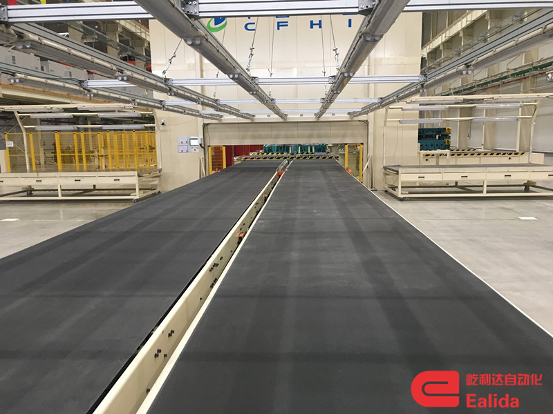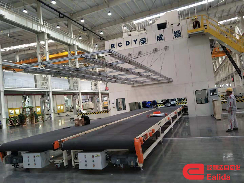 用于承接下料機器人或下料機械手放置的工件,并將工件及時的輸送到線尾。采用變頻電機驅動,設有自動、手動操作模式。