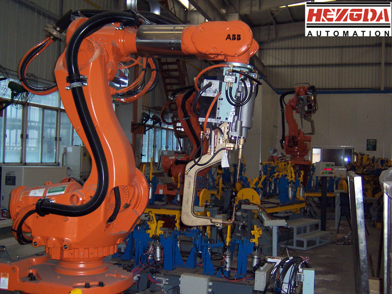 1)每個焊點的焊接周期可大幅度降低,因為焊鉗的張開程度是由機器人精確控制的,機器人在點與點之間的移動過程、焊鉗就可以開始閉合;而焊完一點后,焊鉗一邊張開,機器人就可以一邊位移,不必等機器人到位后焊鉗才閉會或焊鉗完全張開后機器人再移動;